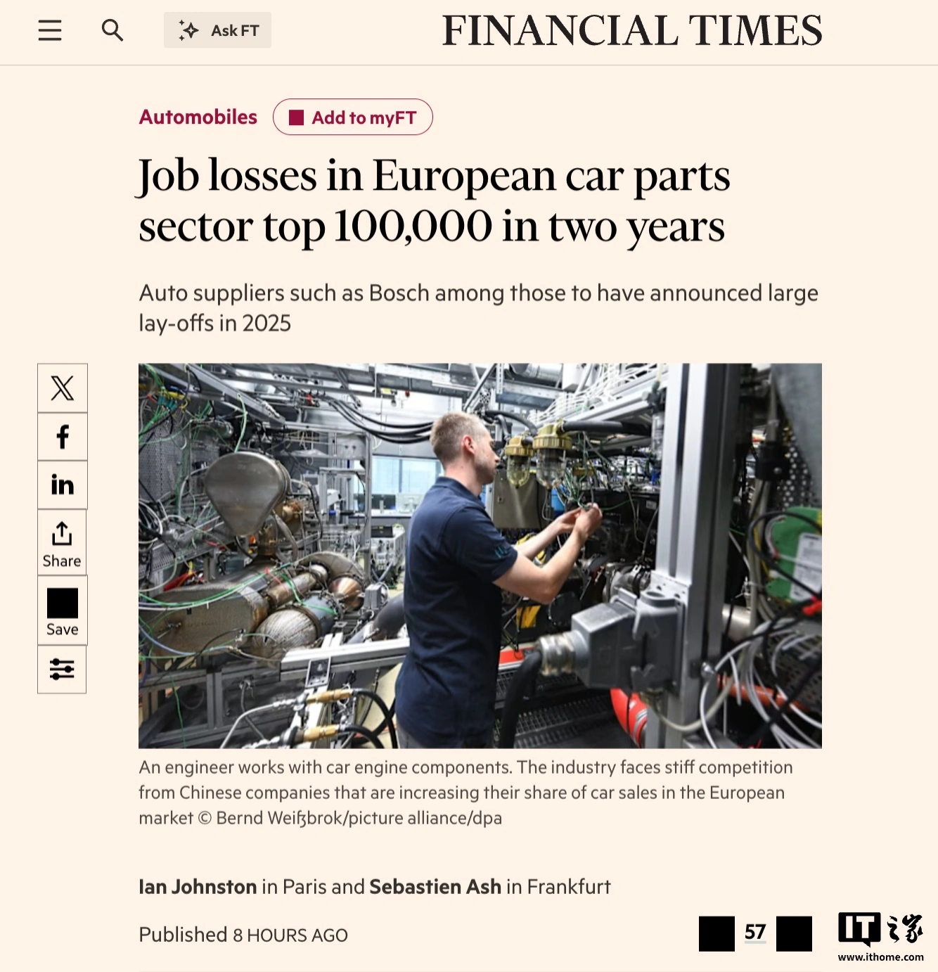 IT之家1月14日消息,当地时间1月13日,据英国《金融时报》报道,欧洲汽车零部件行业的裁员潮仍在扩大。